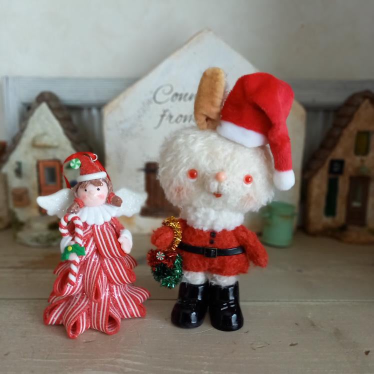この子はサンタになったはんぺんちゃん(うさぎ)です。